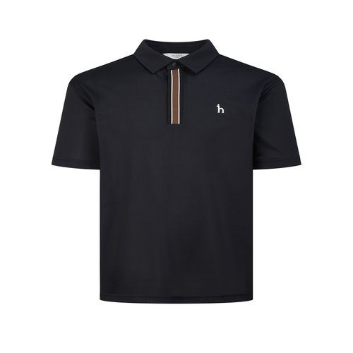 헤지스 골프 [ONLINE EXCLUSIVE] 네이비 남성 플래킷 배색 카라 반팔 티셔츠 (HUTS6B901N5)