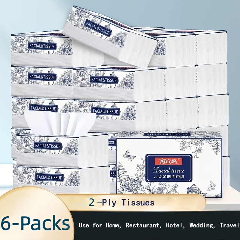 TEMU 초극세사 4겹 페이셜 티슈 6팩 (각 팩 250매) - 무염료, 고품질 일회용 냅킨으로 가정, 호텔, 여행, 차량에 적합합니다. 휴대가 용이하며 여행 필수품입니다.