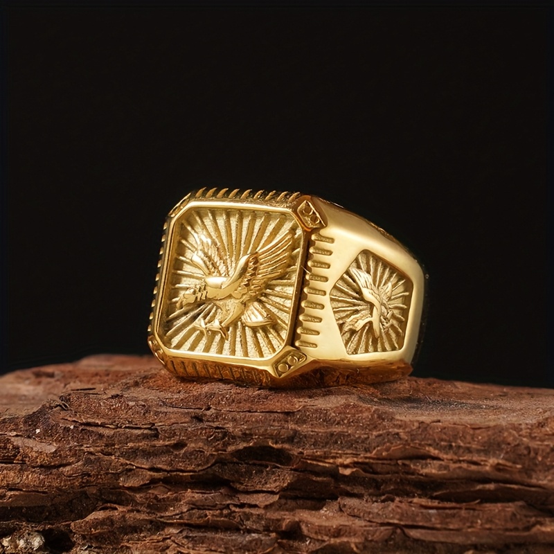 TEMU 남성용 대머리 독수리 실링 랩퍼 링 18K 금도금 새 스탬프 새 반지 316L 스테인리스 스틸 호크 밴드 주얼리