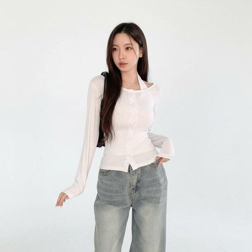 [미라클세븐]여성 몸매 교정 홀터넥 레이어드 긴팔 카디건