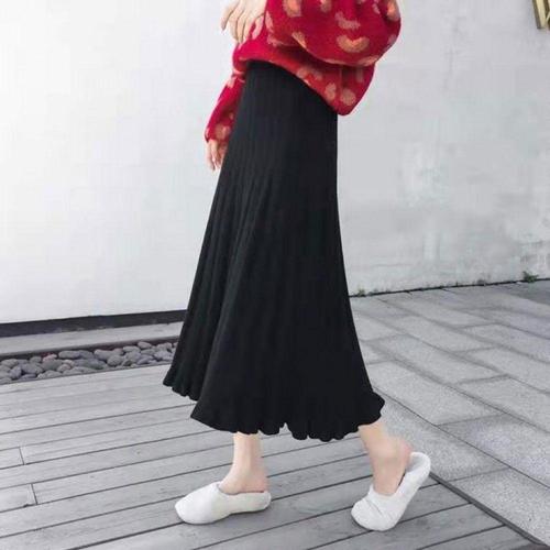 [오너클랜]인기상품 겨울용 블랙 니트 플레어 스커트 여성용 [WFLLMI5_260305]