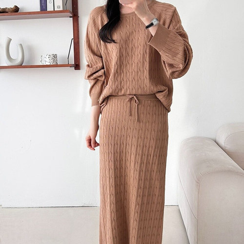 LIRICO 여성 후드 니트 셋업 집업 니트 상하 세트