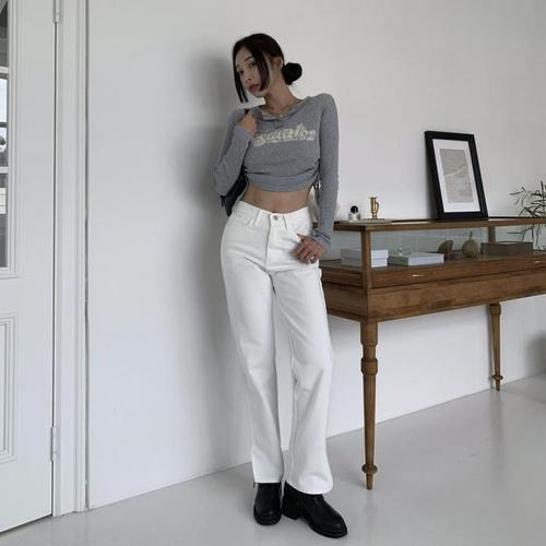 [다잇템]여자 흰색면바지 H라인 사이드슬릿 팬츠 (10943091A)