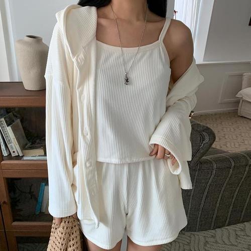 [다잇템]여자 후드가디건 슬리브리스 벨루어 세트 (29415502A)