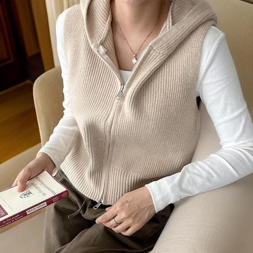 [다잇템]여자 환절기 후디집업 슬리브리스 스웨터 조끼 (10979343A)