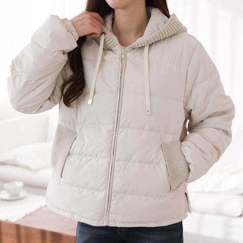 [다잇템]여자 슬릿 덕다운 하찌 믹스 니트후드 패딩점퍼 (27327277A)