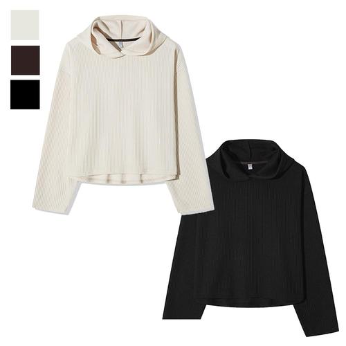 남자 후드 솔리드 골지 크롭 니트티 AC-KNA-Q076-아이보리