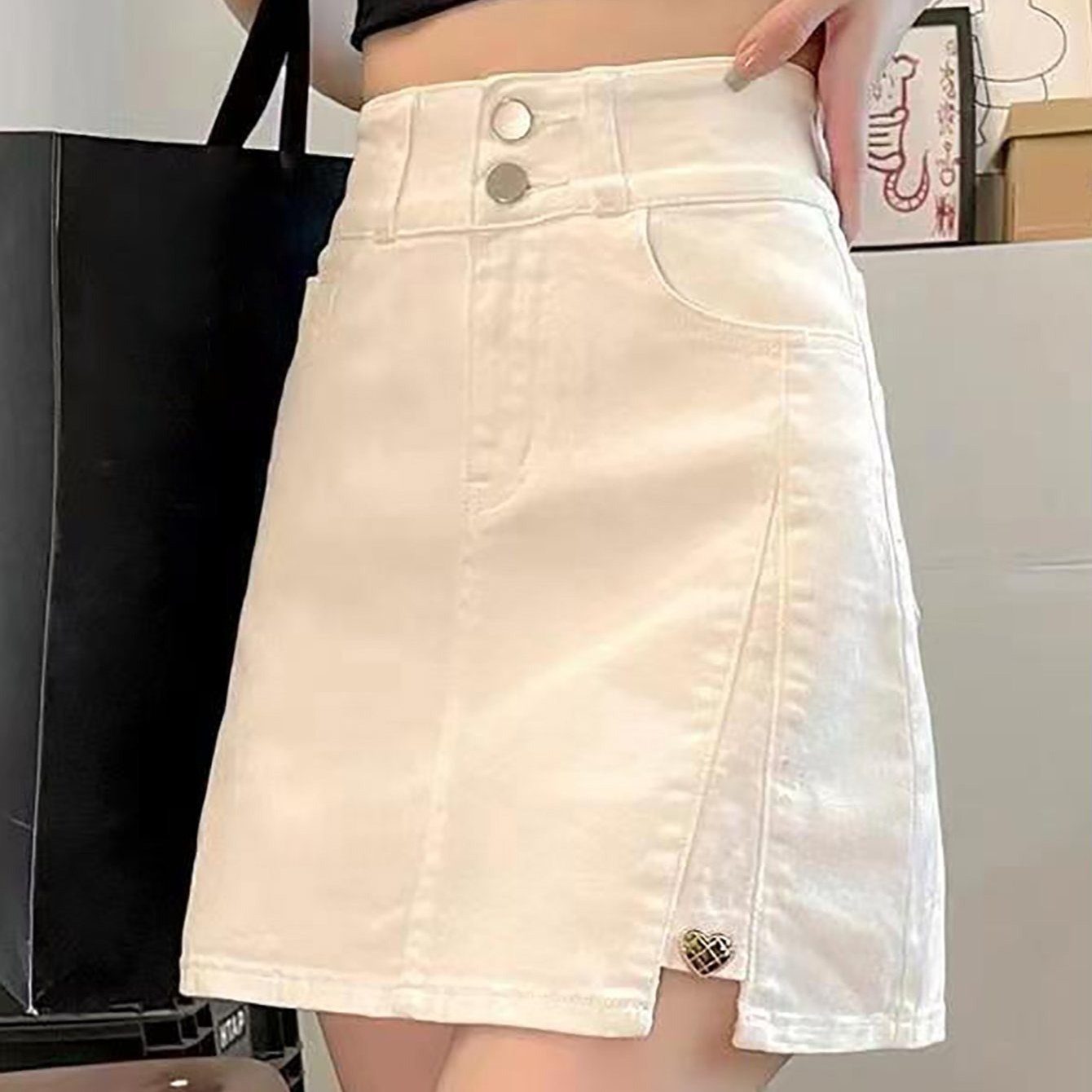 TEMU 여성 봄여름 데님 트임 미니 스커트 하이웨스트 A라인 치마바지 청스커트 데일리 캐주얼 더블 데님 치마바지 A라인 미니 데님 스커트 트임 치마바지 청치마|치마바지