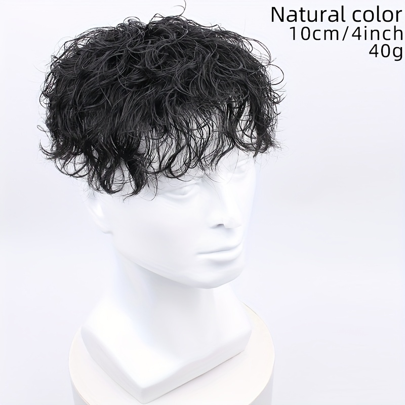 TEMU 남성용 숏 가발, 리얼 헤어, 레슬리 펌, 탑 헤어용 인비저블 헤어피스, 스타일리시하고 매끄러운 컬, 남성용