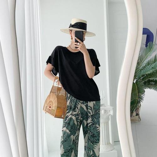[다잇템]여자 하와이 블라우스 트럼펫 휴양지룩 세트 (10280714B)