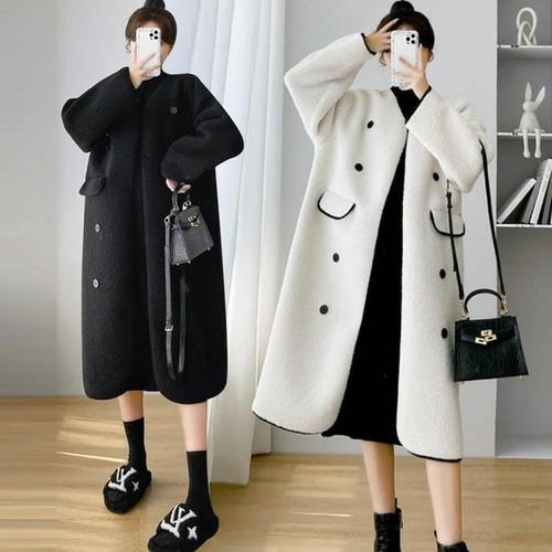 뽀글이 여성 롱코트 오버핏 따뜻한 패딩 양털 후리스 아우터 오버핏 패션 긴팔 롱코트