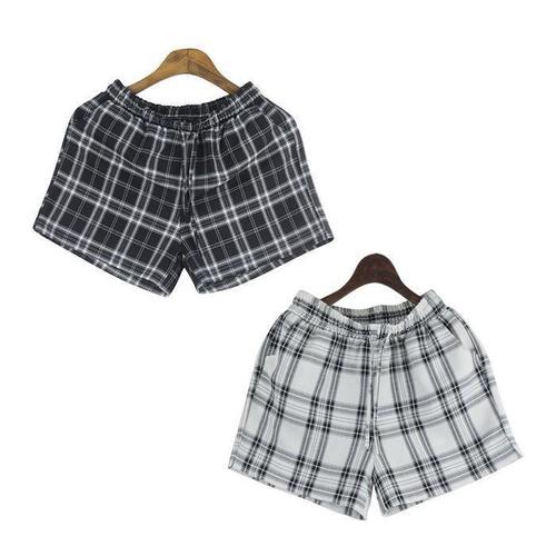 [다잇템]여자 흰색 SS 고무줄 격자 검정 패턴 반바지 (10439754A)