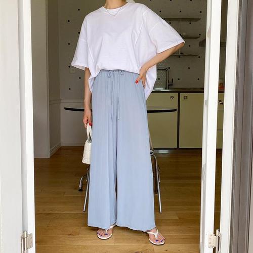 [다잇템]여자 반소매 줄 박시핏 라운드 흰티 티셔츠 (10321596A)