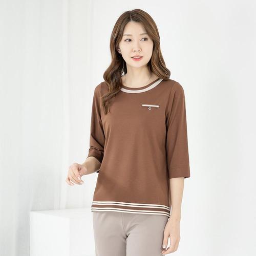 엄마옷 티셔츠 7부 라운드 배색 603BNM211 중년여성/50대/60대/마담/빅사이즈/할머니옷