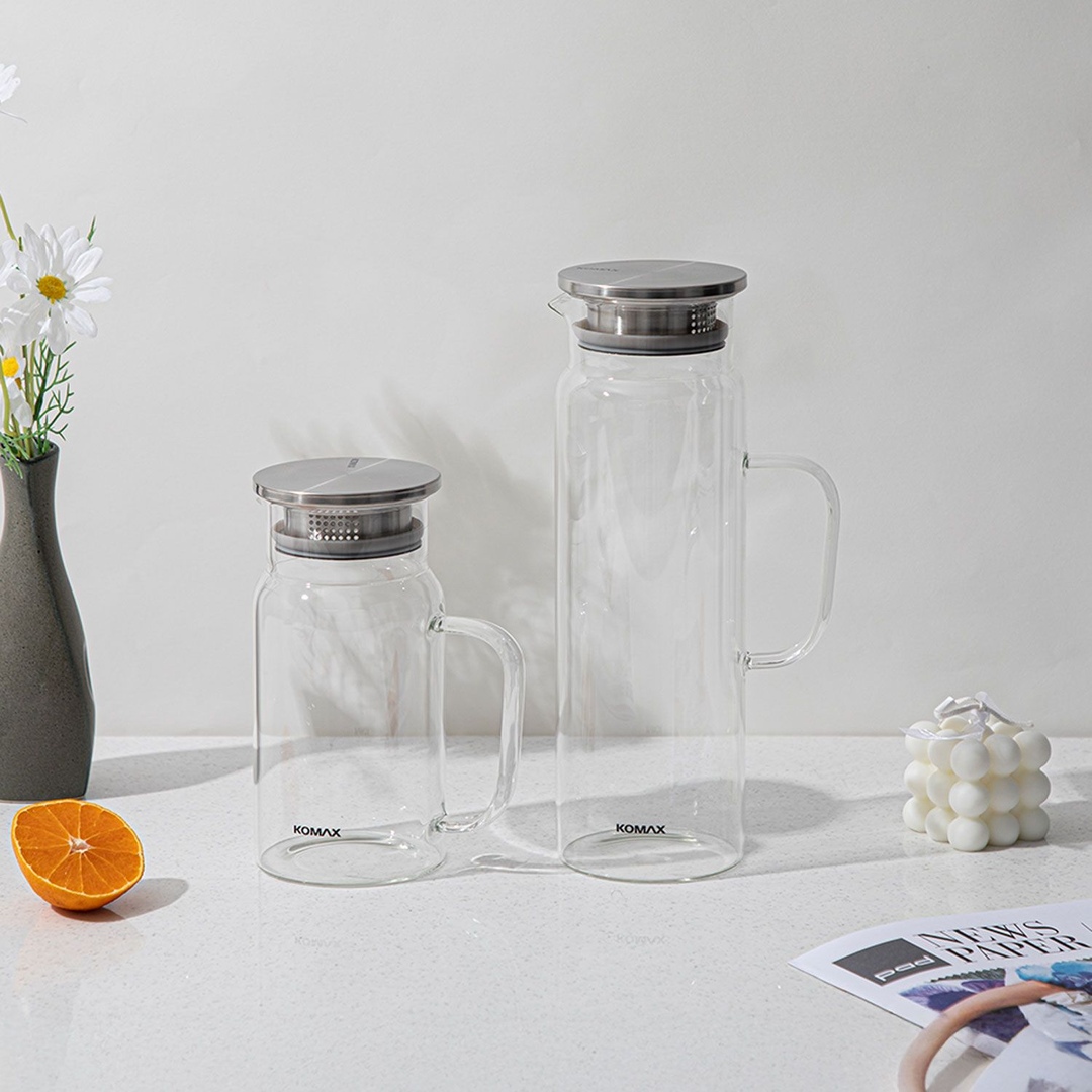 세척편한 스테인리스 차망 내열유리 물병 냉장고 물통 보틀 가정용 1L 1.4L