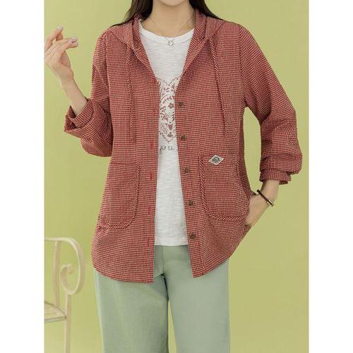 [디얼마미]시어서커 체크 후드 남방 자켓 /마담 미시 중년 여성 빅사이즈 40대 50대