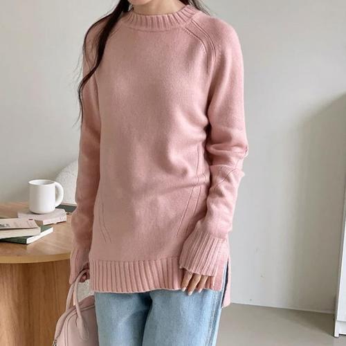 [신상오픈런]옆트임 라운드넥 파스텔 봄코디 긴팔니트 롱티셔츠 (31926420)