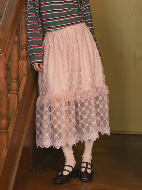 TEMU 우아한 레이스 패널 반투명 맥시 스커트 - 단색 롱드레스, 적당한 신축성, 봄 여름 가을 웨딩 파티 일상복 - 세탁기 사용 가능 스커트 NS702