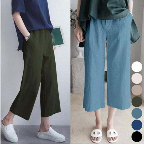 [오너클랜]인기상품 여성용 여름용 린넨 세미 배기 7부 밴딩 통바지 [WFLKQVO_260303]