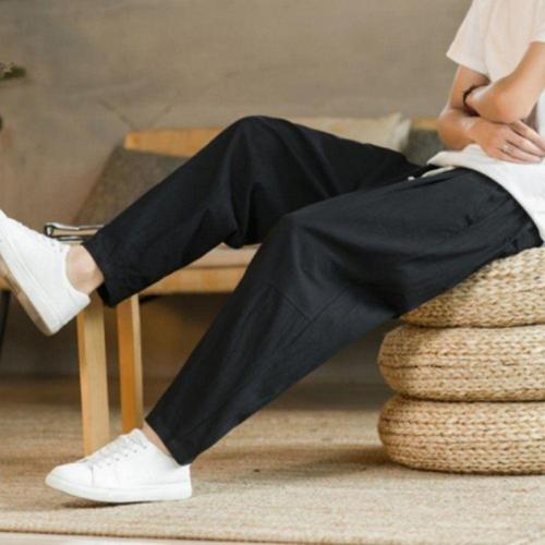 허벅스 남성용 9부 와이드 벌룬 린넨 팬츠