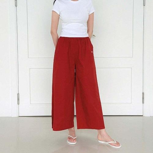 [다잇템]여자 9부 넓은 면팬츠 와이드팬츠 짧은 슬랙스 (7597816B)