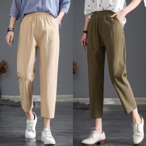 9부 코튼린넨 배기바지 여름 여성 고무줄 밴딩 면바지