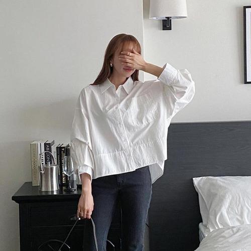 [다잇템]여자 에이라인 다크 순면남방 사이드슬릿 셔츠 (11375921A)