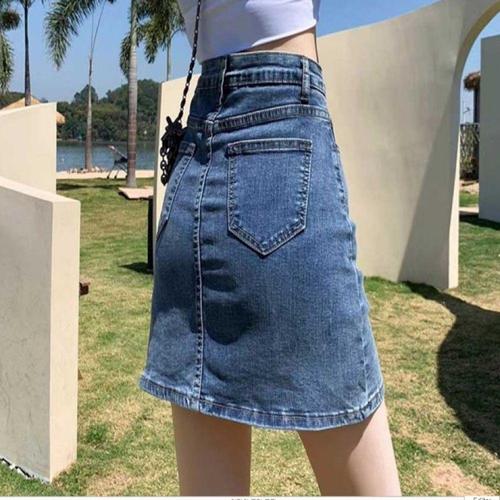 여자 앞트임 데님 A라인 스커트