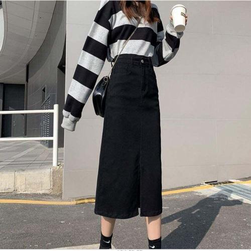 [오너클랜]인기상품 여성 봄가을 데님 롱스커트 A라인 앞트임 청치마 [WFLKYAF_260304]