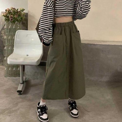 율랑팡 여성 A라인 앞트임 힙업 스커트 가을슬림핏 오피스룩 일자 롱 HO3