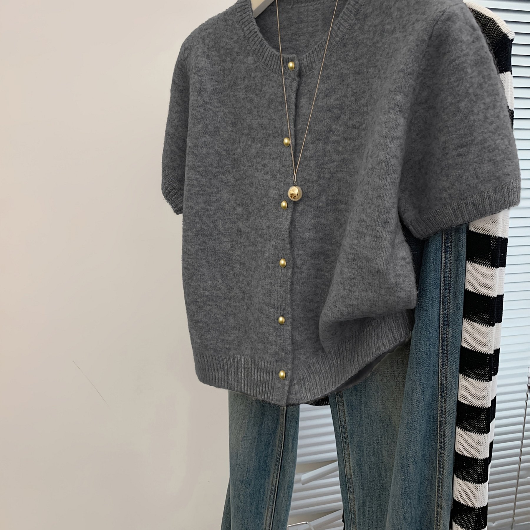 TEMU 여성 미니멀 가로 레이어드 가능한 니트 후드 코트 - 사계절 캐주얼 중간 신축성 한국계 ins룩 소프트원단 가로 (가로 ) 손세탁/드라이크리닝
