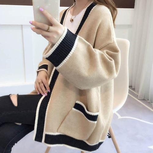 여성용 캐주얼 자카드 가디건 루즈핏 스탠드 칼라 지퍼 포켓 올매치 여성 스웨터 2026 봄 두꺼운 따뜻한 니트웨어
