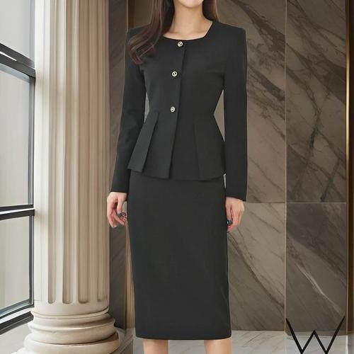 [샵앤]국산 여성 정장 스판 H라인 뒤트임 스커트 NS-WSK-21054-블랙