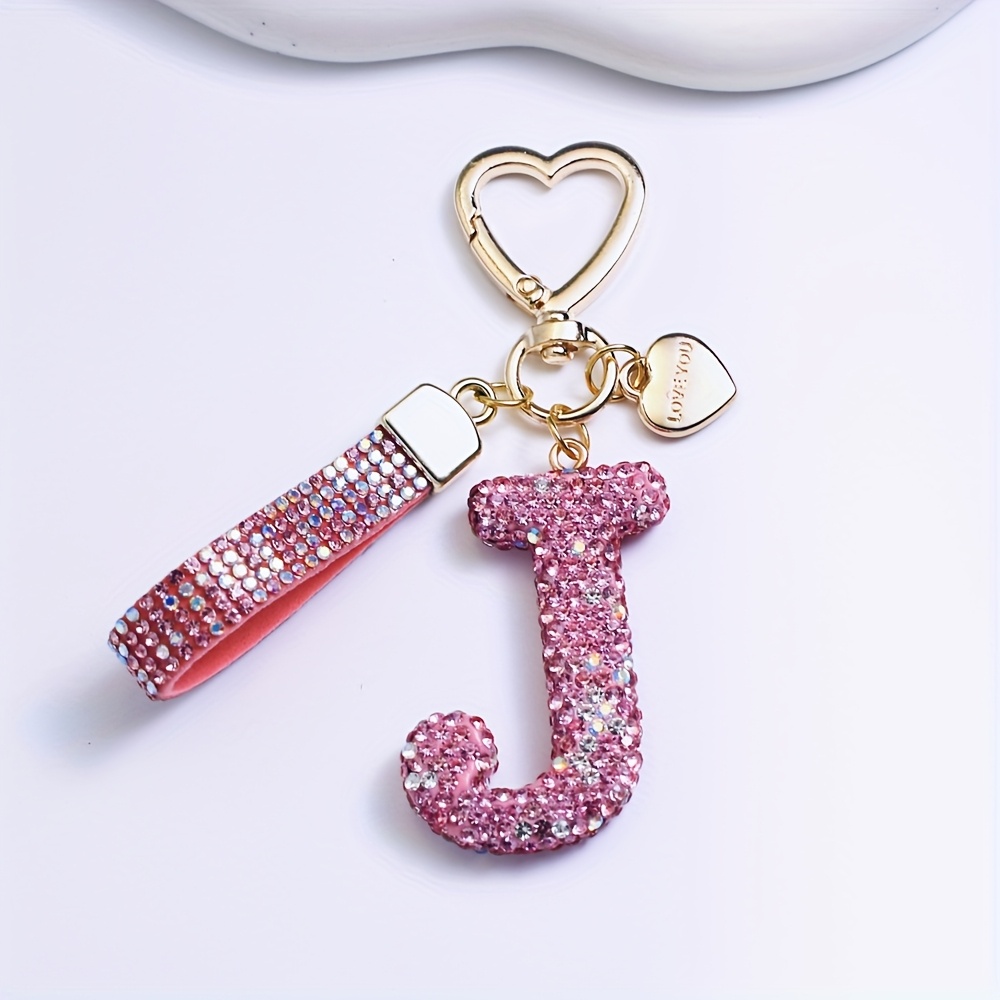 TEMU 라인스톤 장식 PVC 키체인 - 핑크 & 화이트 이니셜, 커프 클로저, 전원 불필요 - 엄마, , 파티, 생일 선물로 완벽