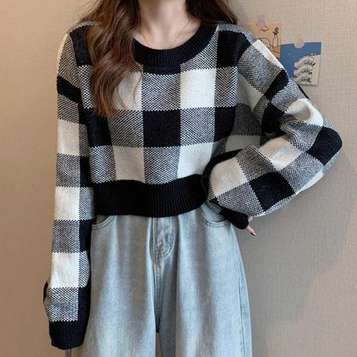 [주식회사 브이와이][JHQRKF1J_4B]여성 라운드넥 가을니트 체크 겨울 기장 (23829503A)
