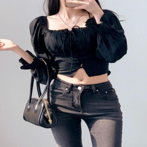 [주식회사 브이와이][JHQRJG0G_4B]여성 데이트룩 2컬러 셔링 오프숄더 블라우스 (24059239A)