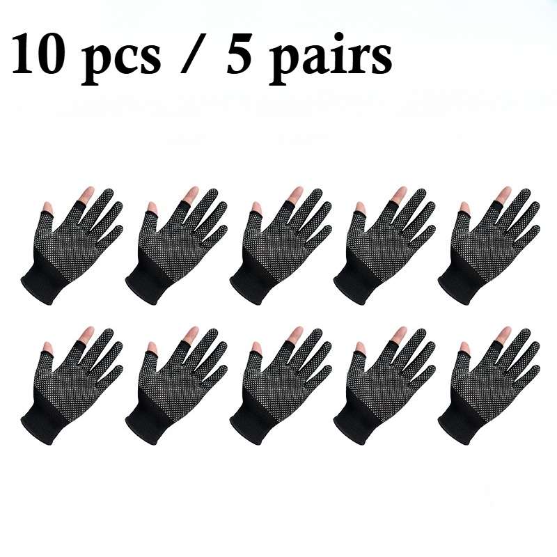 TEMU 10개입 낚시장갑, 니트 투핑거 장갑, 사이클링 장갑, 미끄럼방지 점이 있는 장갑, 사계절 야외용, 낚시, 사이클링, 하이킹 - 세탁기 및 손세탁 가능, 유연한 디자인, 발렌타인데이 선물 또는 생일선물로 완벽, 블랙/그레이 옵션 제공