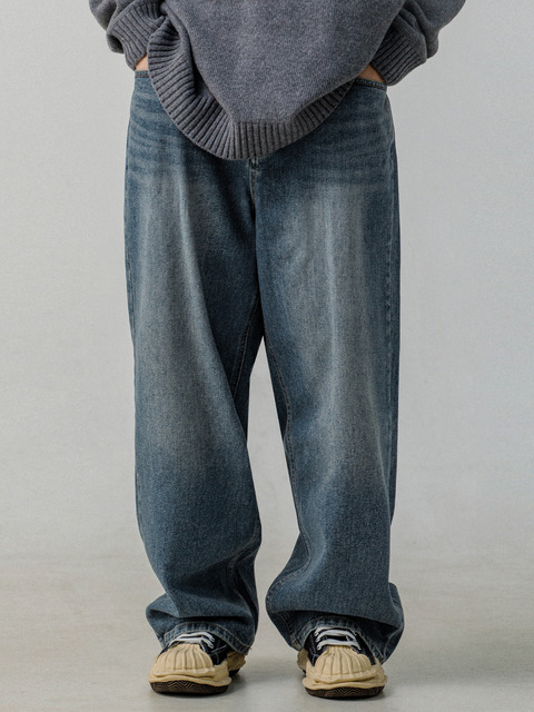 [러기드하우스] 어텀 캣 워싱 와이드 데님 팬츠 중청 베이지
