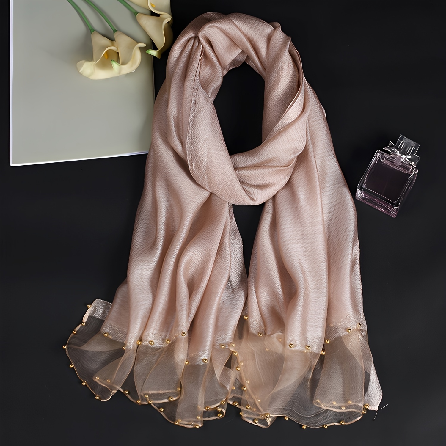 TEMU 100% 롱 스카프, 우아한 유럽 스타일 숄, 골든 베이지 플로럴 패턴, 라이트 럭셔리 넥 스카프, 스타일, 청춘스러운 룩, 봄과 여름에 적합, 외출, 피크닉, 선물, 비치웨어, 파트너 선물, 웨딩, 발렌타인데이에 완벽