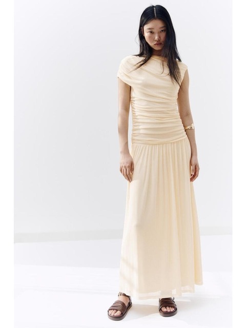 [에이치엔엠] 드레이프 메쉬 드레스 페일 옐로 1334242001