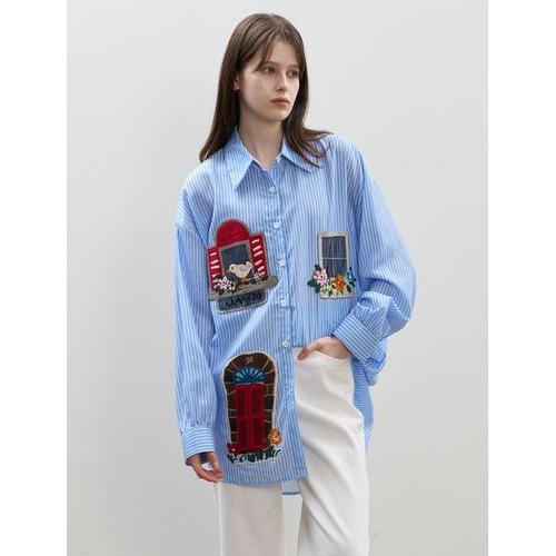 [BNX]빈티지 스트라이프 패치 포인트 셔츠 (BX3BL023L0)