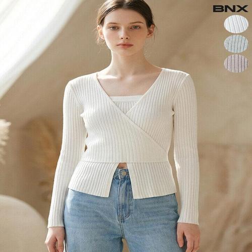 [비엔엑스]여성 골지 브이넥 랩 레이어드 니트