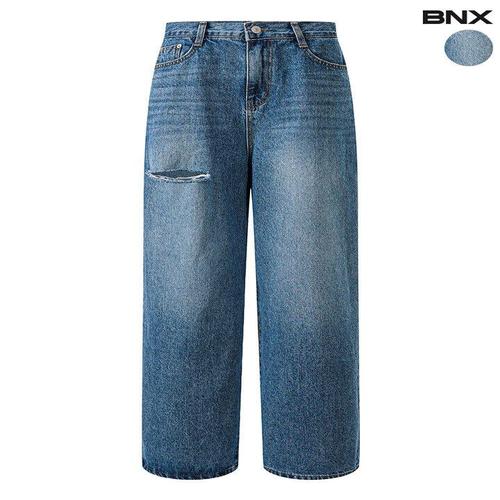 [비엔엑스]여성 코튼 데미지 와이드 통 팬츠