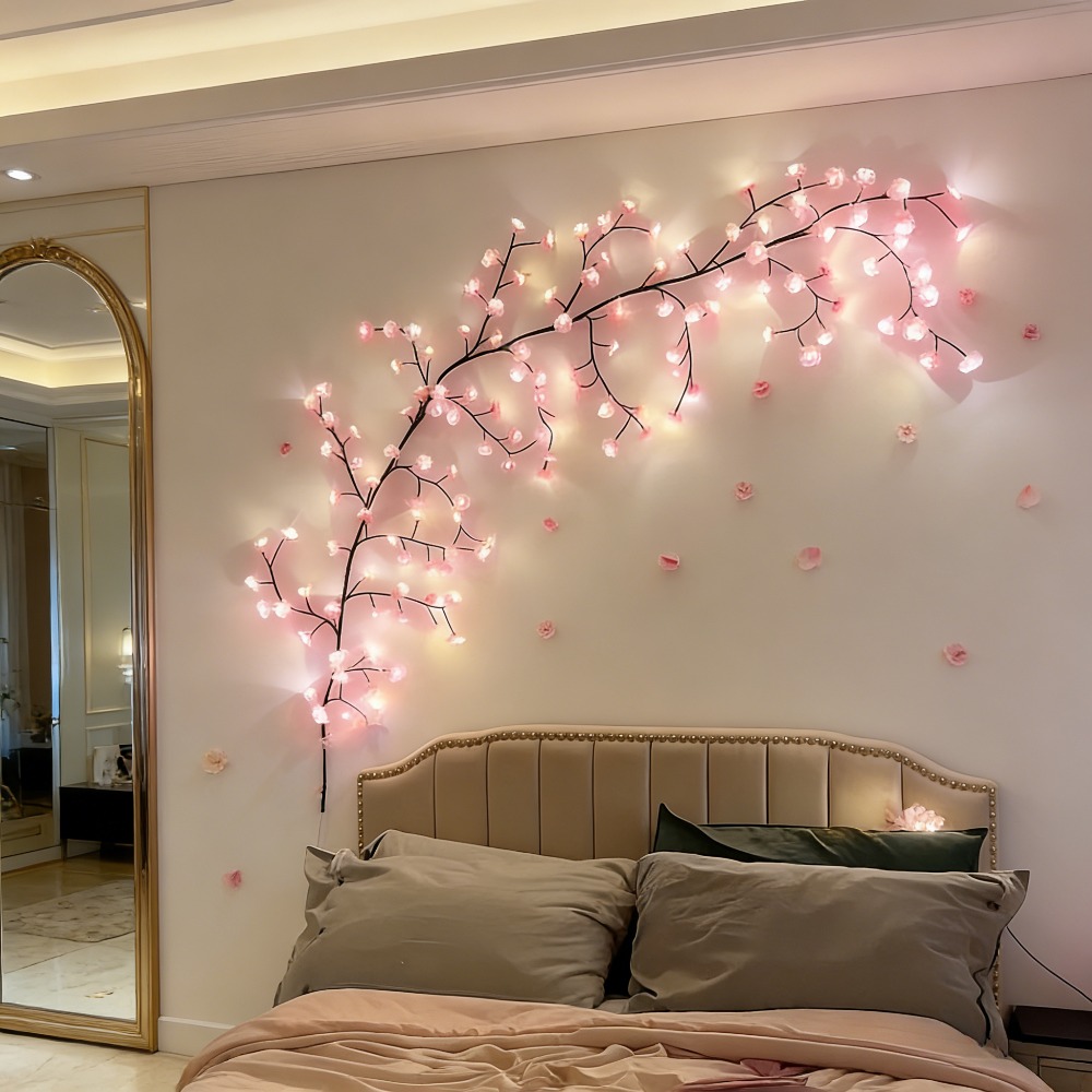 59피트 높이의 100피트 LED 플라워 요정 조명 리모컨 부드러운 꽃이 있는 연결 가능한 반짝이 침실 웨딩