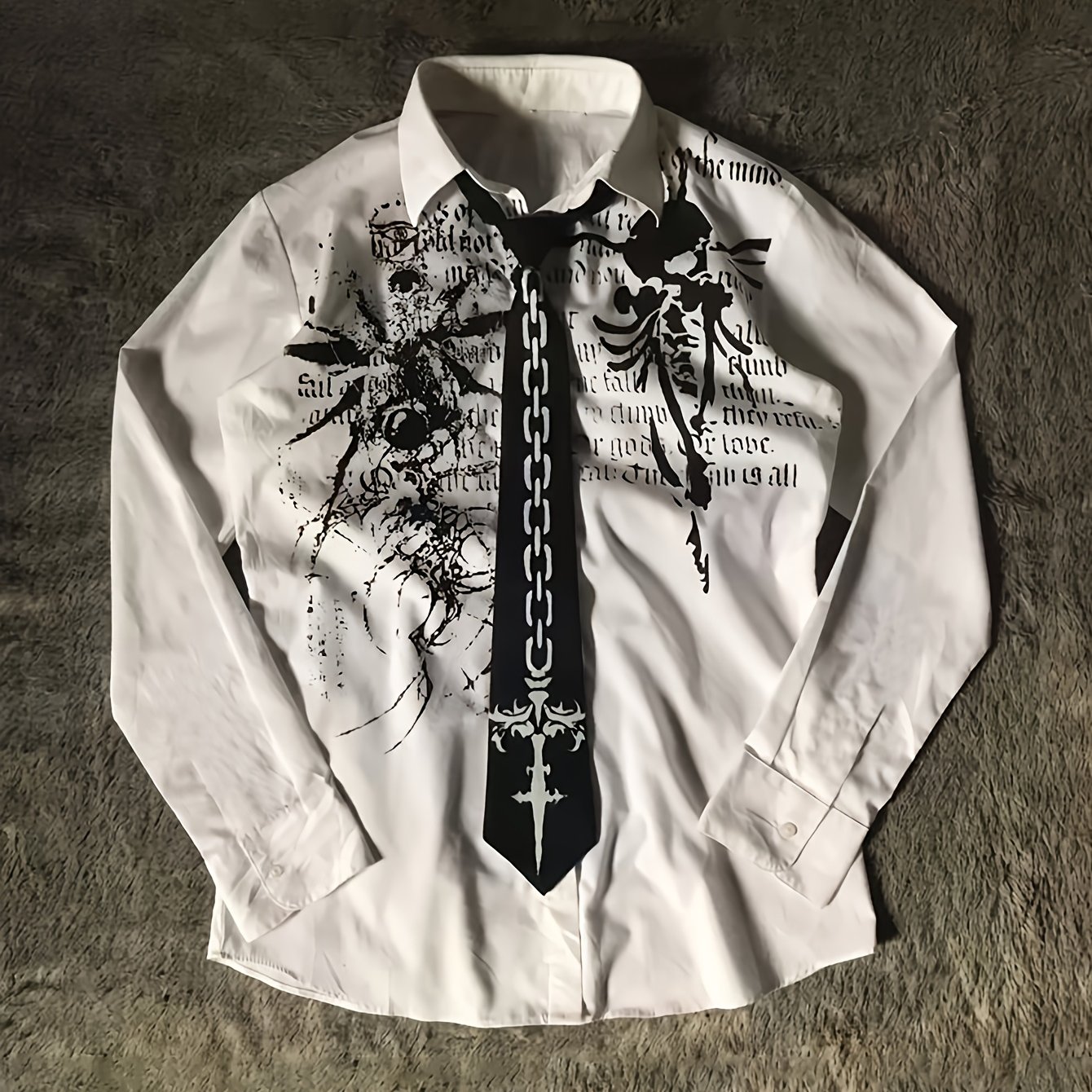 TEMU Y2K 새로운 빈티지 다크 고딕 패턴 긴팔 셔츠, 통기성 좋은 타이 프린트 빈티지 고딕 화이트 셔츠, 화이트 빈티지 고딕 스타일 패션 프린팅 셔츠, Gavin