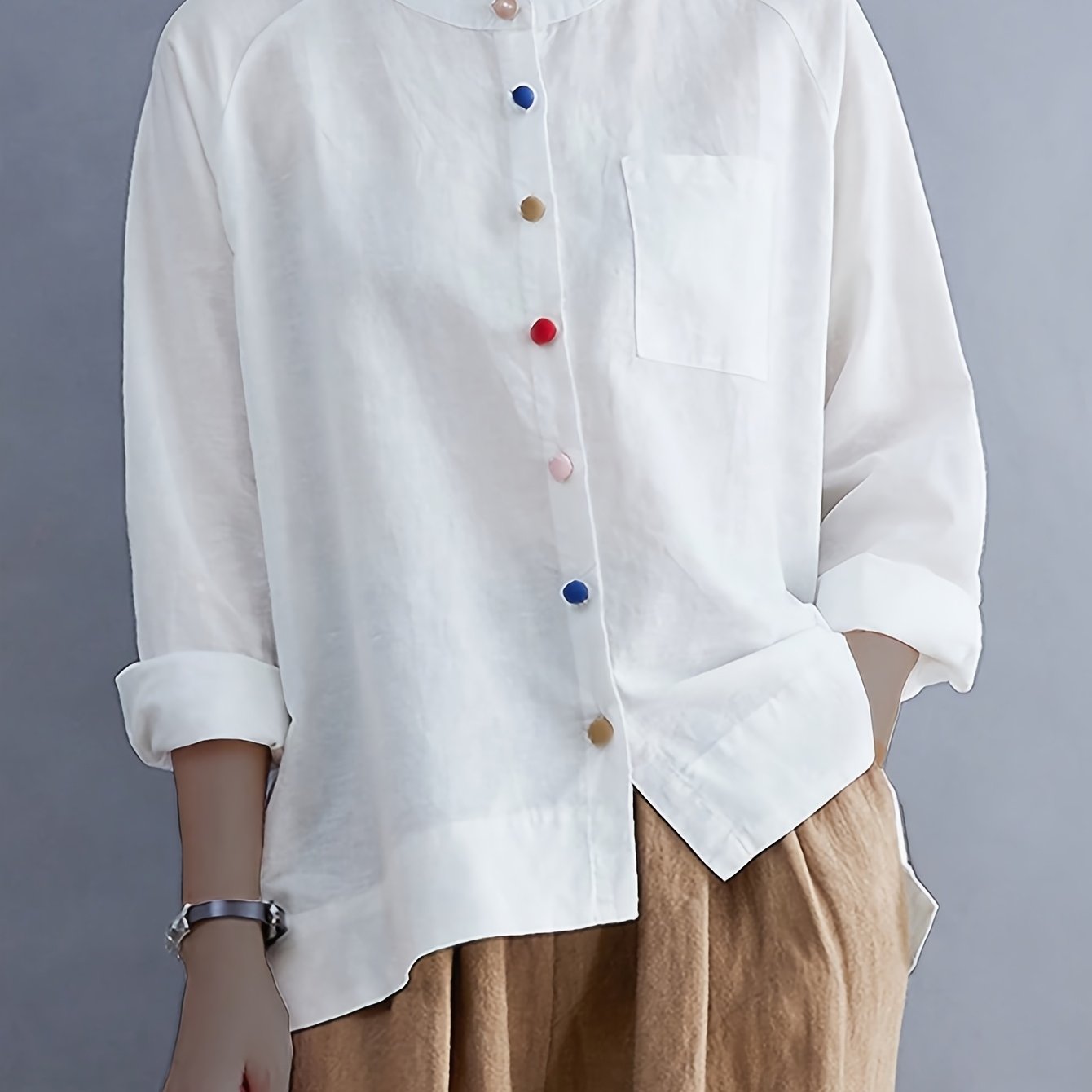 TEMU 여성용 우아한 루즈핏 캐주얼 셔츠, 단추 디자인, 봄/여름 신상