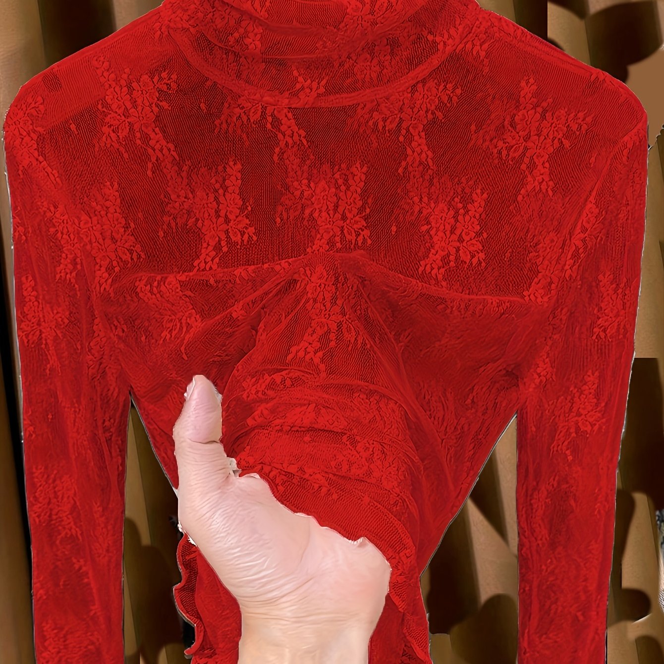 TEMU 얇은 하이넥 레이스 캐미솔, 여성 의류, 새로운 봄/여름/가을 러플 메쉬 언더셔츠 탑