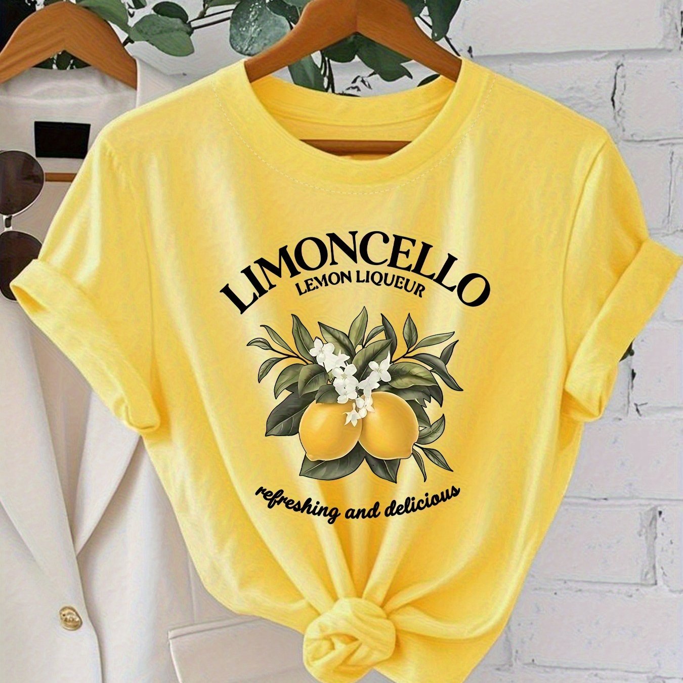 TEMU 우아한 여성 패션 의류, 새로운 라운드넥 디자인과 독특한 스타일을 선보입니다. 레몬 그래픽 프린트와 영어 글자가 있는 세련된 반팔 캐주얼 티셔츠가 특징입니다.