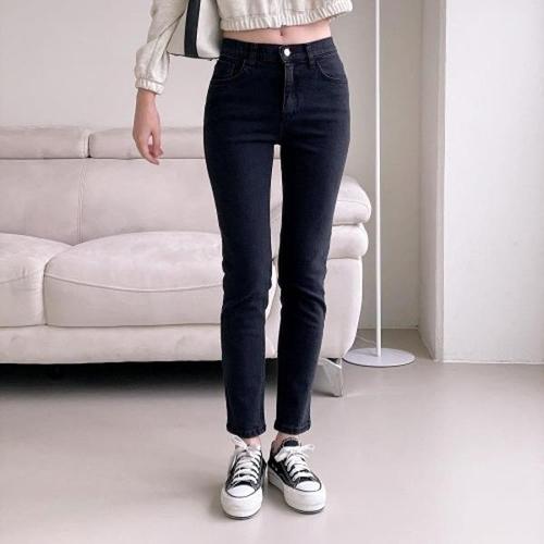 [다잇템]여자 쫀쫀스판 다크 클래식 검정데님 슬림 바지