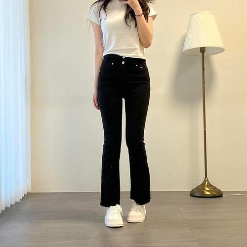 [옷자락]여자 일자핏 FW 편한 검정데님 밑단컷팅 데님팬츠